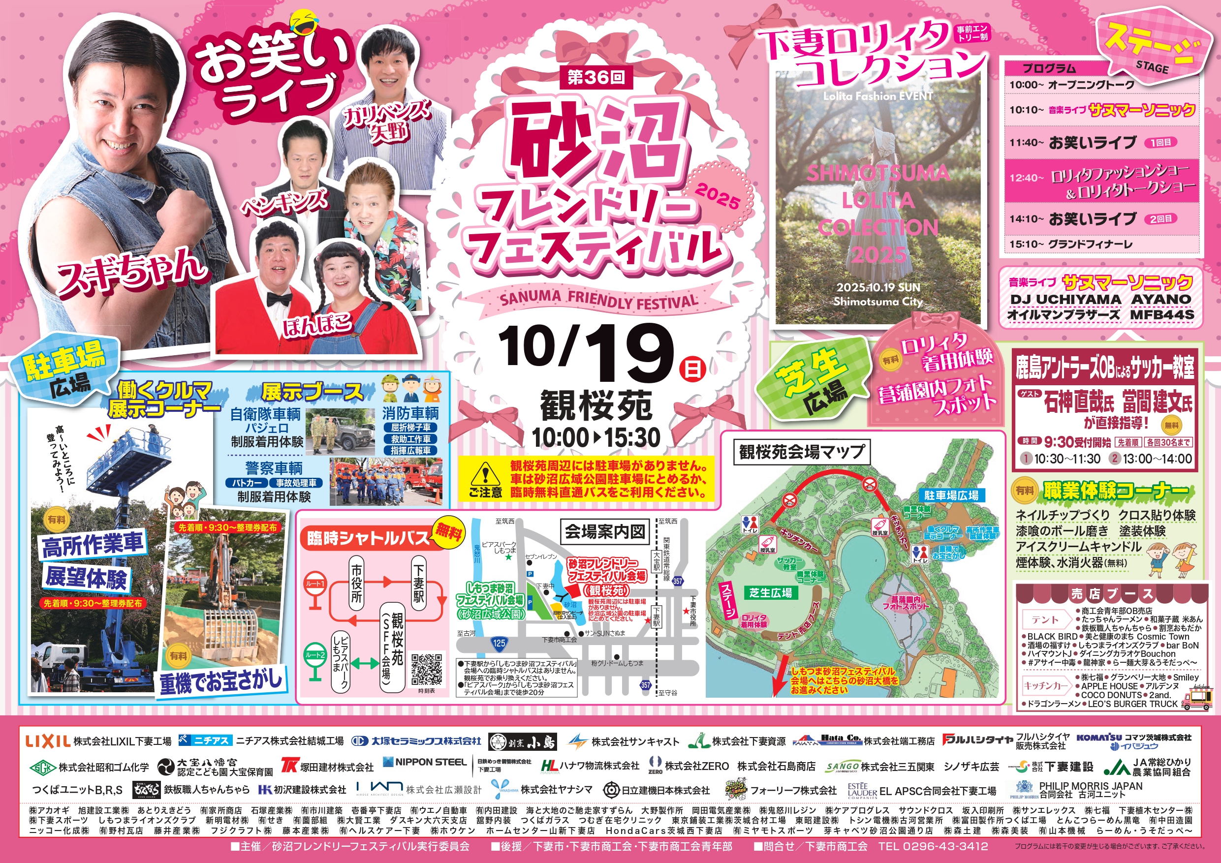 このたび弊社は、下妻市の秋の一大イベント「砂沼フレンドリーフェスティバル」に企業協賛いたしました。
