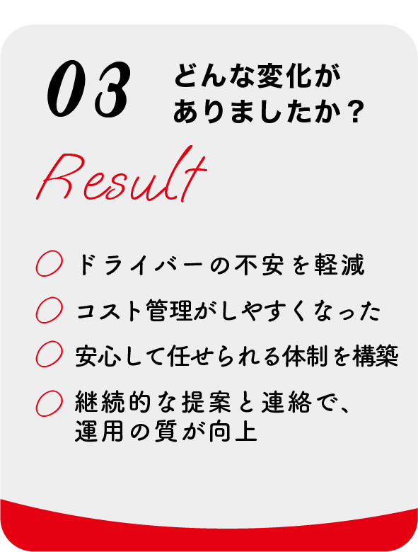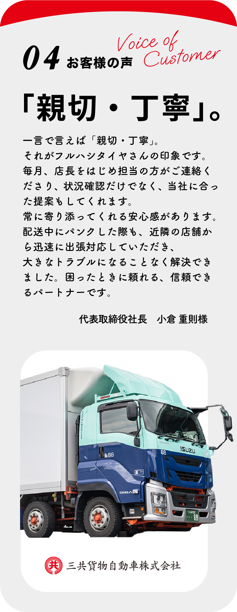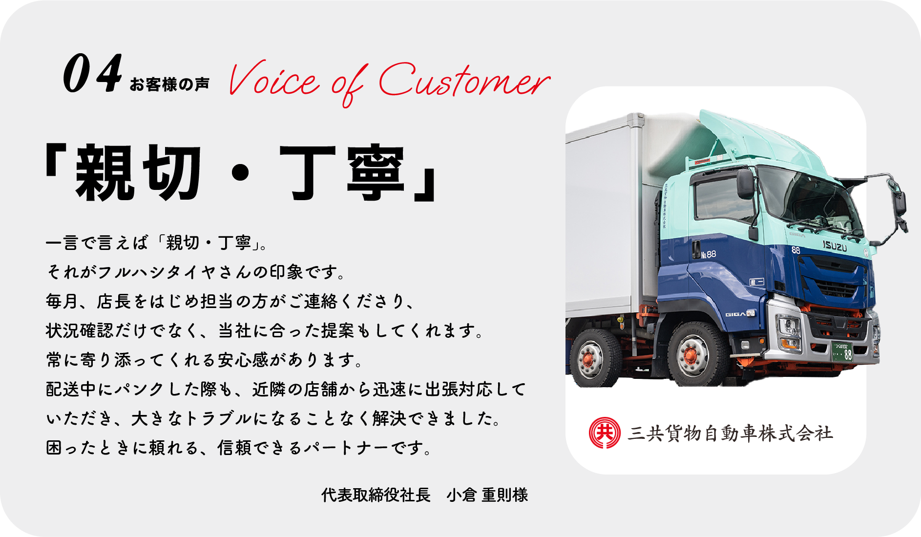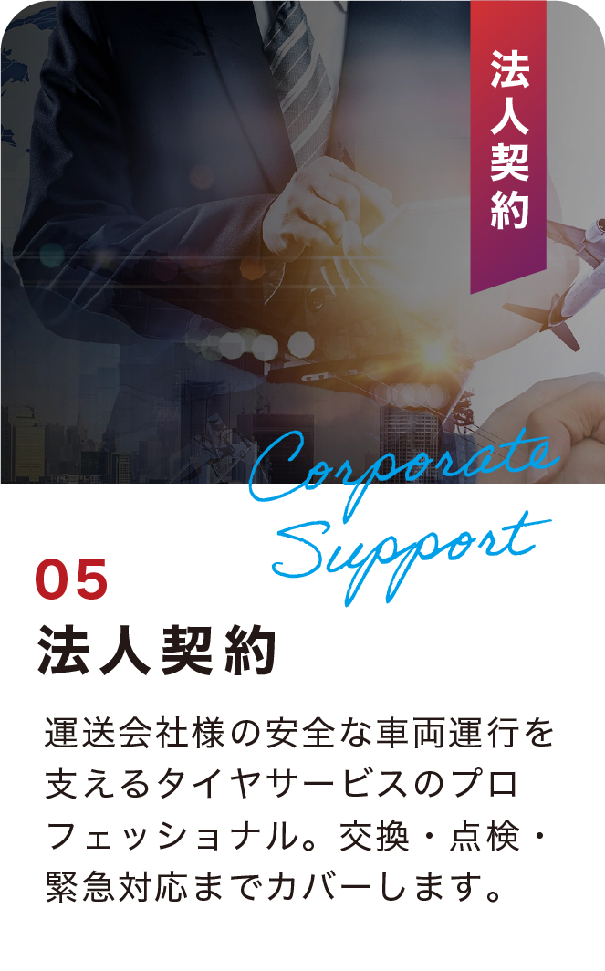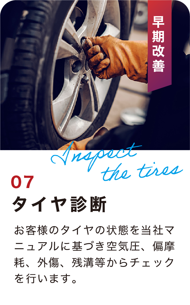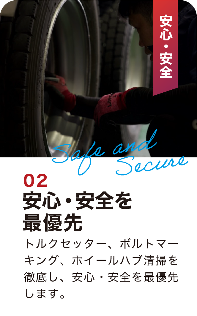 タイヤのベストコンデションを実現し、お客様の安心・安全で経済的な運行に貢献します。
