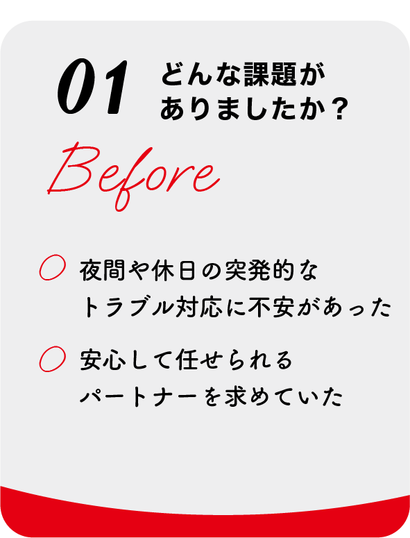 急なトラブル発生の際は、最寄りの営業所へご一報下さい。
