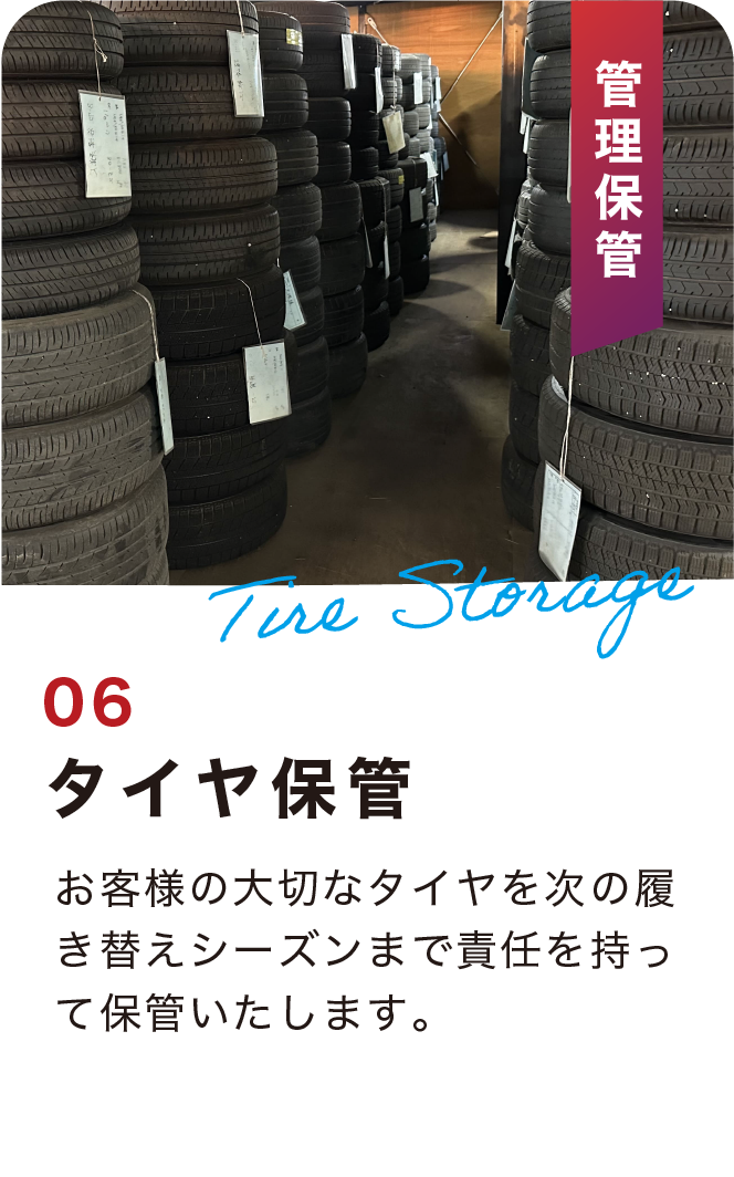 タイヤ交換からメンテナンス、急なタイヤトラブル、履き替えシーズンまでのタイヤ保管サービスなど、タイヤに関するトラブルやお困りごとは当社にお任せください!