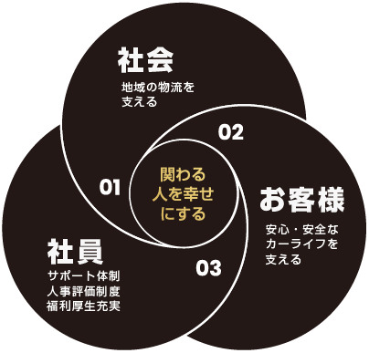 「人」が集まる会社として、お客様、社員、そしてその家族、取引先様すべての幸せを追求し、社会貢献に努めてまいります。これからも、変化を恐れずに挑戦を続け、100年企業を目指します。