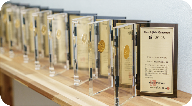 40年連続で、全国ブリヂストンタイヤショップの中でも最優秀賞・優秀賞を受賞。 茨城県内ではNo.1の取引実績を誇り、信頼と実績で業界をリードしています。