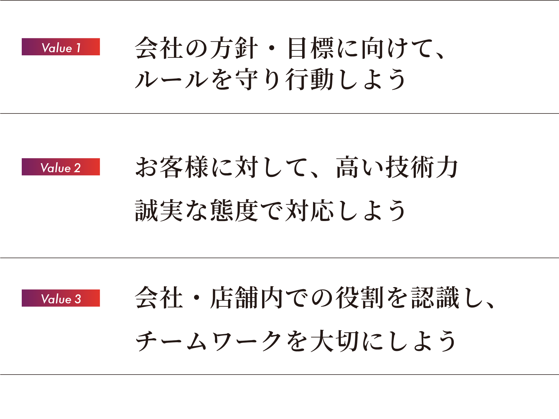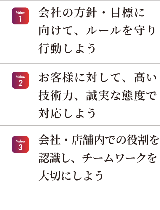 創業から今日まで変わらず貫いてきたのは、「タイヤを通じてお客様の安心・安全・快適を支える」という使命、そして「お客様のお困りごとに徹底的に寄り添う」という姿勢です。 その本質を守りながらも、私たちは時代の変化に合わせて、社員がより誇りを持ち、働きがいを感じられる環境づくりを進めてまいりました。