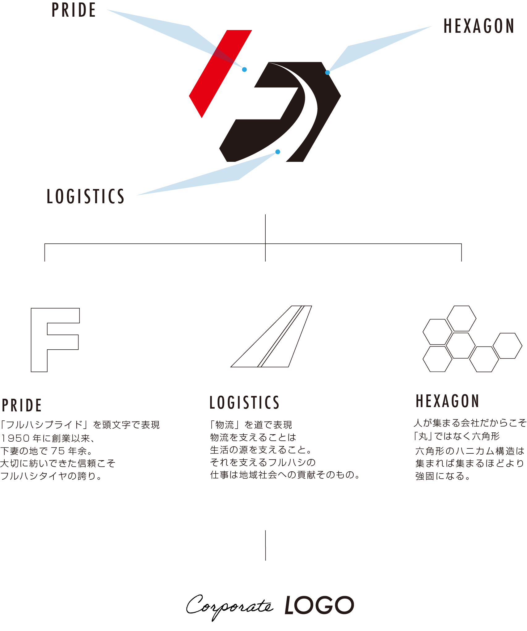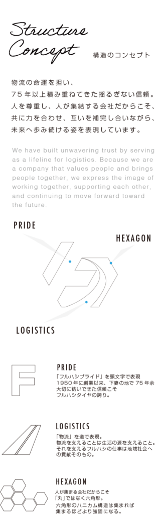 物流の命運を担い、75年以上積み重ねてきた揺るぎない信頼。 人を尊重し、人が集結する会社だからこそ、 共に力を合わせ、互いを補完し合いながら、 未来へ歩み続ける姿を表現しています。
