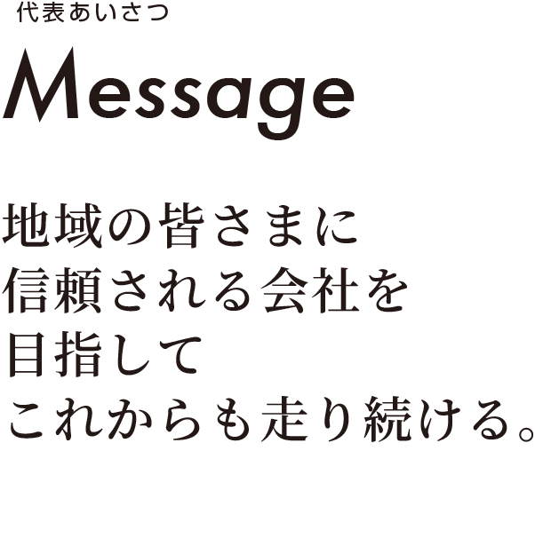 変化の激しい時代だからこそ、「不易流行」の精神を胸に、いつまでも変わらない誠実さと感謝の心を持ちながら、新しい技術・新しい価値を積極的に取り入れてまいります。