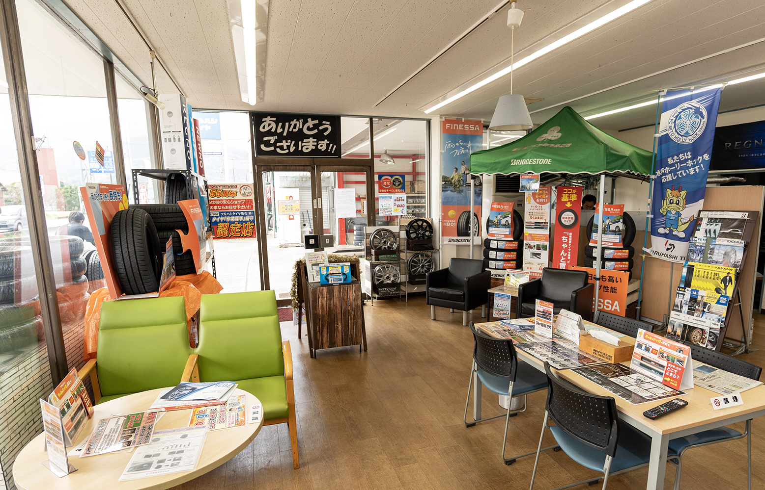 当店は地域密着のタイヤ専門店として、気軽に立ち寄れるお店づくりを心がけています。 タイヤのことはよくわからないという方も大歓迎です。 空気圧チェックや点検だけでもお気軽にお越しください。 皆様のご来店を心よりお待ちしております。