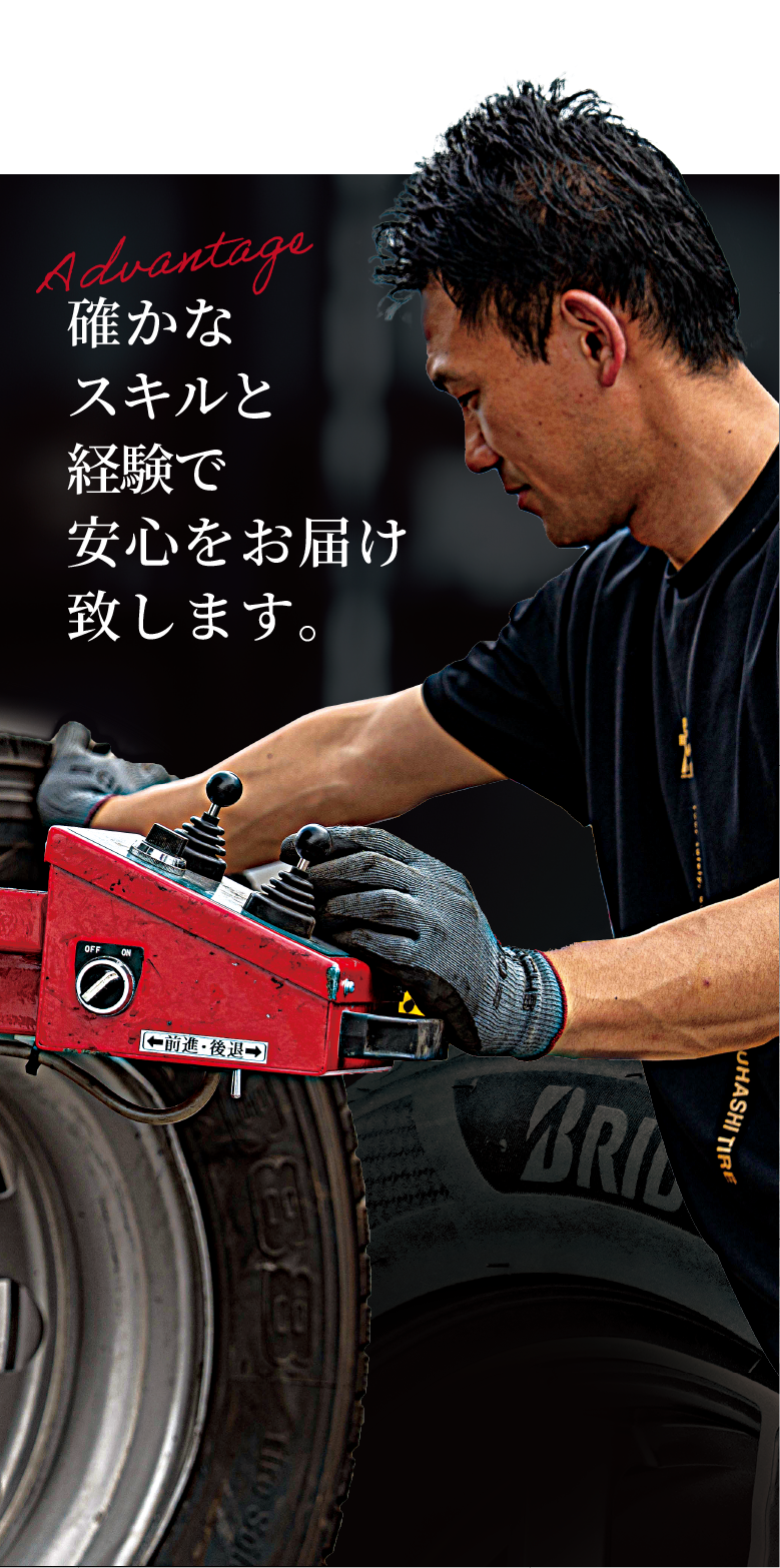 フルハシタイヤが創業以来75年にわたり積み重ねてきた知識と経験をもとに、お客様のお困りごとに徹底的に向き合っております。提案力に磨きをかけ、営業の強みとサービスの強み、さらに7台のサービスカーによる迅速な対応力を活かし、「フルハシタイヤに頼んでよかった」と感じていただけるよう努めてまいります。